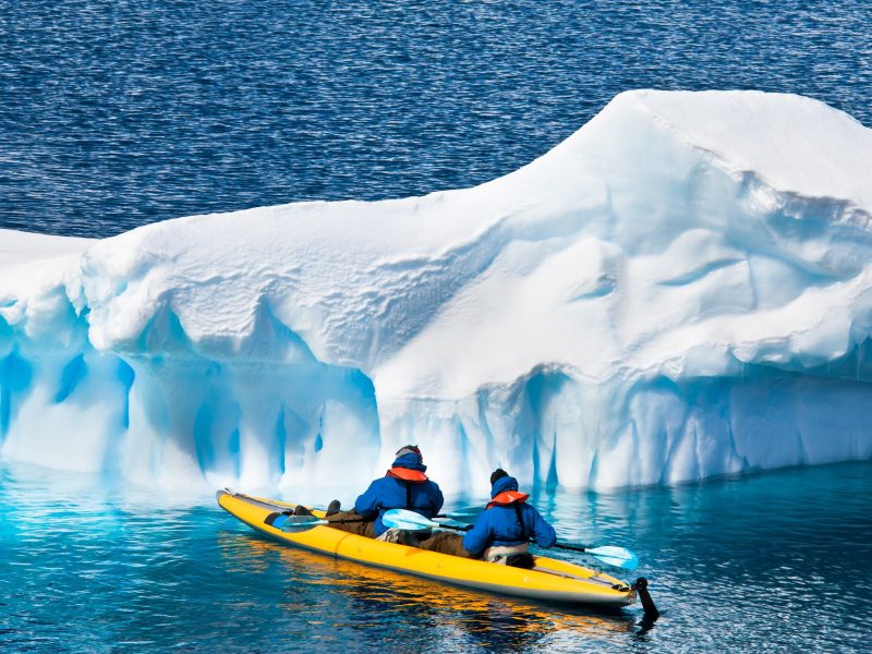 Canadá es uno de los mejores lugares del mundo para ver icebergs, y en Newfoundland puedes hacerlo desde la costa, en un bote turístico o incluso en una aventura guiada en kayak por mar. Estos grandes gigantes blancos se desprenden de los glaciares en el oeste de Groenlandia y flotan hacia el sur a lo largo de una ruta conocida como Iceberg Alley. Incluso puedes ver sus posiciones vía satélite usando icebergfinder.com.