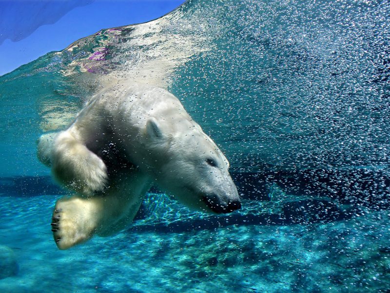 Solo en Cochrane, Ontario, tendrás la oportunidad de sacarte una foto mientras nadas con un verdadero oso polar. Está bien, no nadar con un oso polar, pero está lo más cerca posible (son osos, después de todo). En una pequeña piscina para niños al lado del estanque de osos polares, los visitantes de verano pueden sacar una foto con el ganuk de 740 lb. ¿El truco? ¡El oso polar y el estanque infantil están separados por plexiglás grueso y transparente, lo suficientemente fuerte como para detener incluso al poderoso Ganuk!