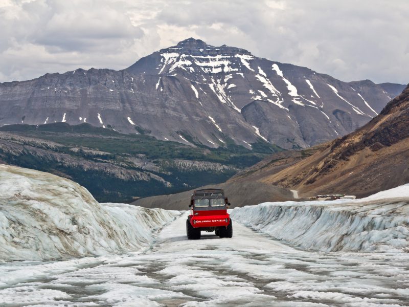 El Icefields Parkway, una espectacular ruta de 232 km que serpentea a través de las Montañas Rocosas entre Banff y Jasper, te lleva al pie del glaciar más accesible del mundo. Desde mediados de mayo hasta mediados de septiembre, puedes subir a bordo de un vehículo todoterreno e ir directamente al glaciar Columbia Icefields Glacier, solo asegúrate de cuidar tu paso.