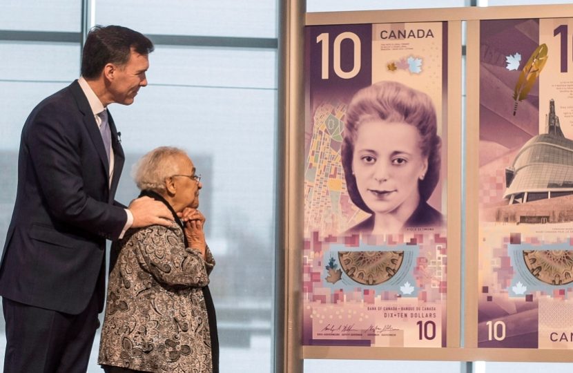 El proyecto de ley presenta a la icono de los derechos humanos Viola Desmond en su frente y el exterior del Museo Canadiense para los Derechos Humanos en su parte posterior. Desmond, que es considerada una heroína de los derechos civiles porque se negó a abandonar una sección de teatro solo para blancos en Nueva Escocia en 1946, es la primera mujer fuera de la Familia Real que aparece en la moneda canadiense.